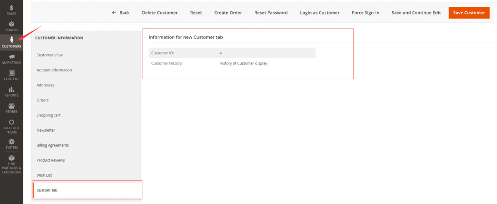 在 Magento 2 中,您可以在客户编辑页面中添加新的自定义选项卡。如果您想在客户编辑部分为您的自定义要求添加一个新选项卡,您可以在客户编辑部分轻松添加客户选项卡。