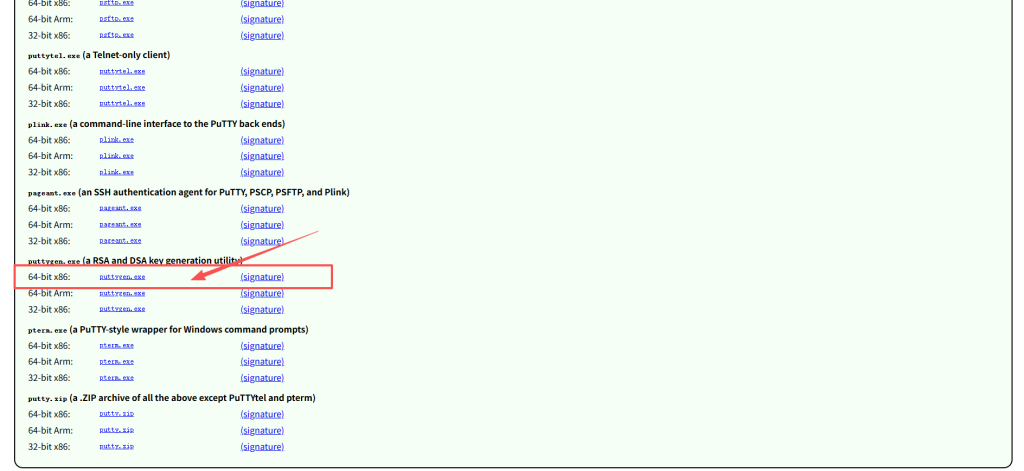 还要下载 puttygen.exe,可以在页面直接搜索puttygen,然后下载